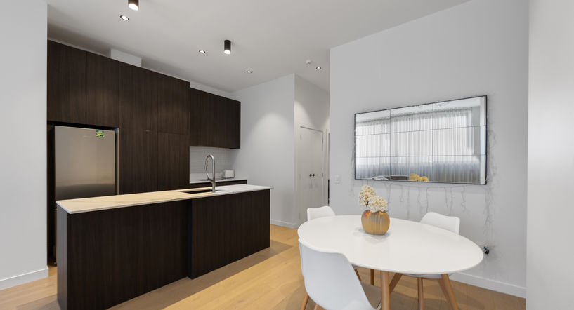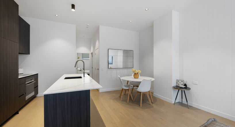 With an impressive 3 metre stud, this north facing duplex at 1/8 Vinegar Lane feels larger, lighter and more refined than most modern builds.